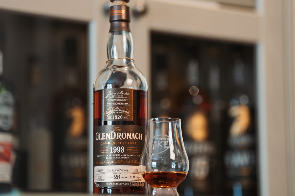 The Schtick: Distilled in 1993 and aged for 28 years, this single cask from the well known Scotch producer was bottled after full maturation in a PX Puncheon (we think – Glendro are notorious for re-racking) and bottled at cask strength without coloring or filtering. This puncheon yielded 659 bottles and was bottled for the FL Market. Let’s dive in.